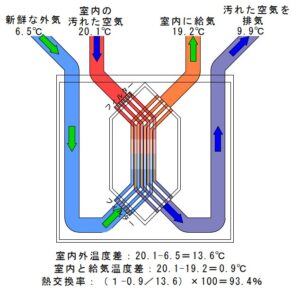 顕熱交換第一種換気/熱交換率93.4%