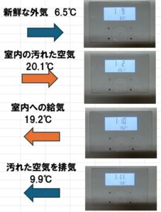 室内排気温度と給気温度の温度差