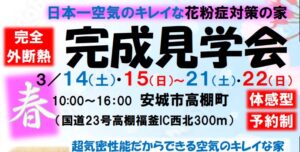 花粉症の方必見!完成見学会/C値0.08完全外断熱で日本一空気のキレイな家
